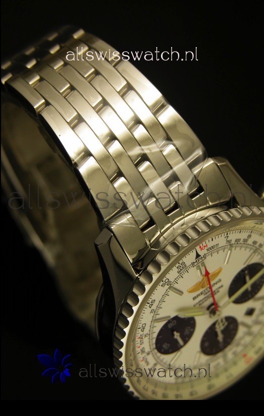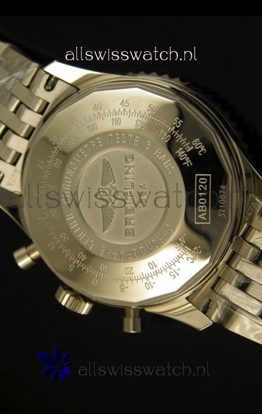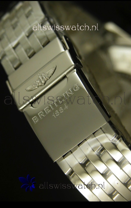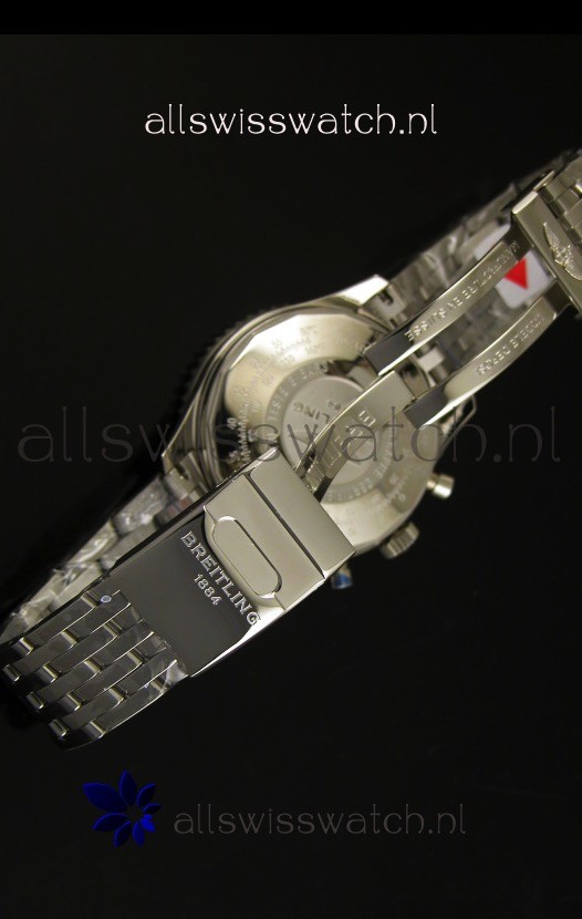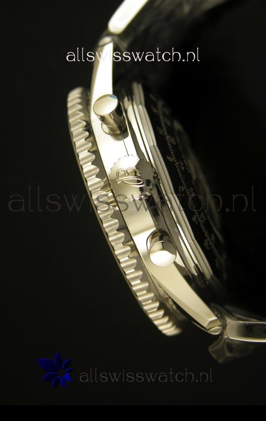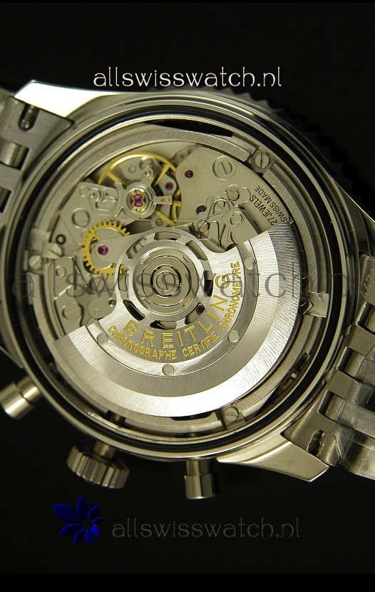 Genuine Swiss 7750 Movement with Functional Stopwatch exactly like the Authentic. 28,800 VPH. Platinum Plated Rotor and Breitling Markings on machinery exactly as per the Original