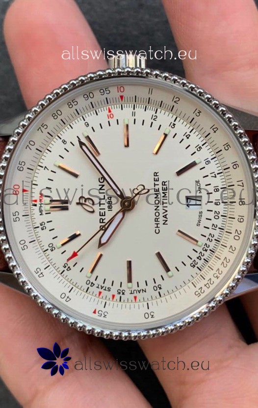 Breitling Navitimer 1 Automatic Swiss Replica Watch in White Dial - Leather Strap