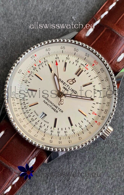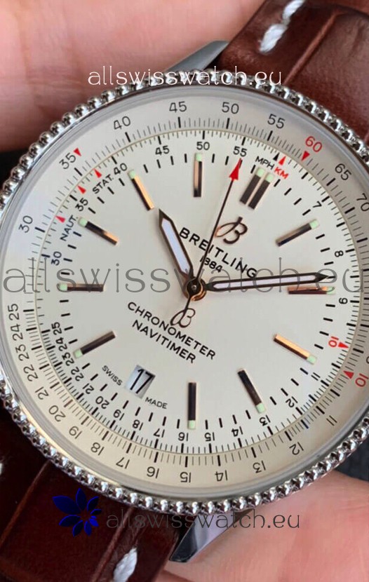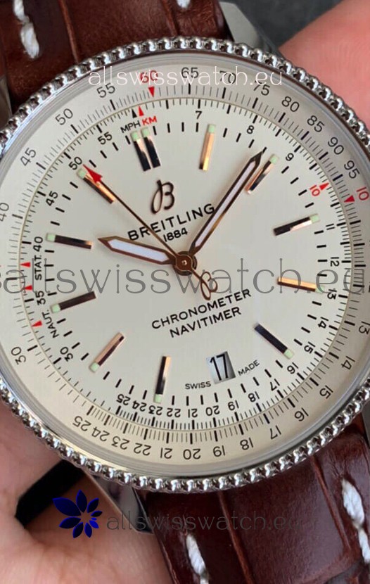 Breitling Navitimer 1 Automatic Swiss Replica Watch in White Dial - Brown Leather Strap