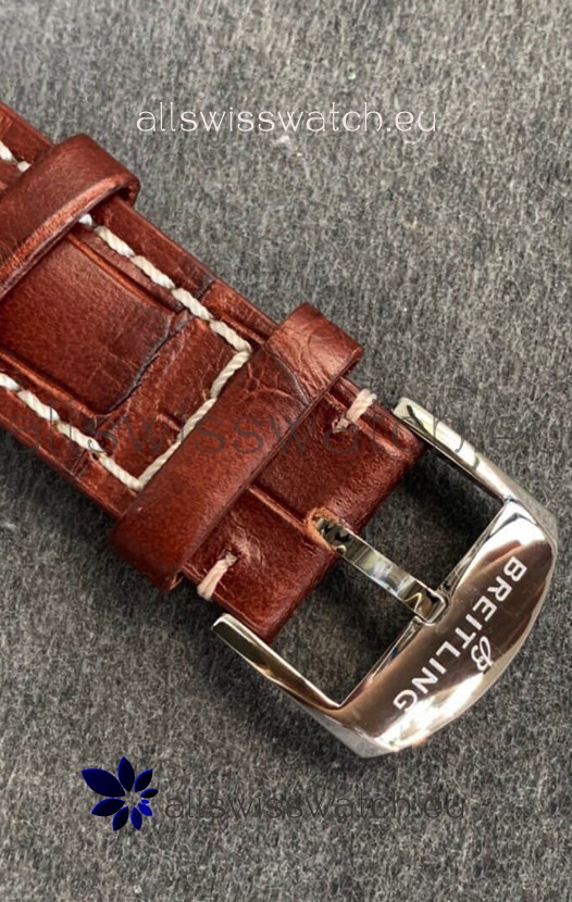 Genuine Leather Leather Strap with Stainless Steel Tang Buckle complete with Breitling Markings and Engravings