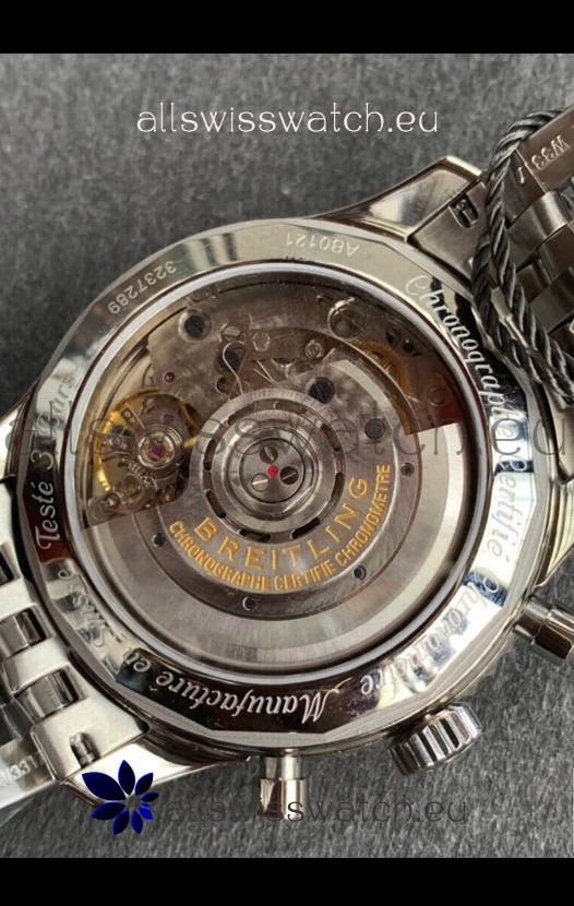Genuine Swiss Nickel Plated 7753 Movemet with Decorated Plate and movement details as per the originals. Machinery resassembled to resemble the Calibre Movement from Breitling
