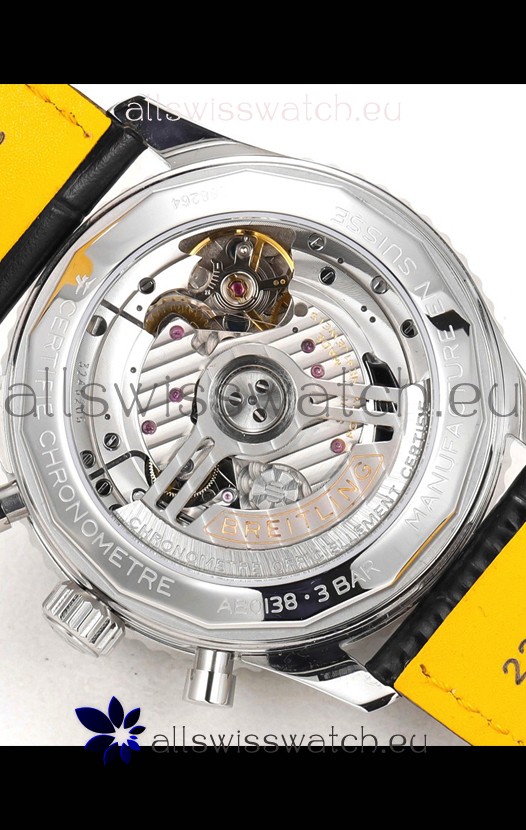 Genuine Swiss Nickel Plated 7753 Movemet with Decorated Plate and movement details as per the originals. Machinery resassembled to resemble the Calibre Movement from Breitling