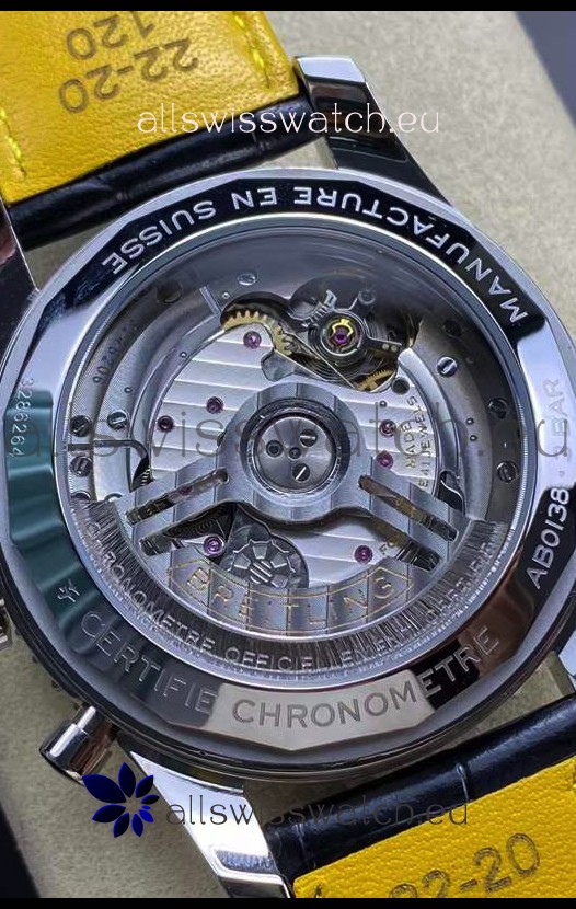 Genuine Swiss Nickel Plated 7753 Movemet with Decorated Plate and movement details as per the originals. Machinery resassembled to resemble the Calibre Movement from Breitling