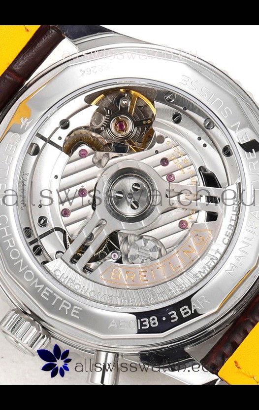 Genuine Swiss Nickel Plated 7753 Movemet with Decorated Plate and movement details as per the originals. Machinery resassembled to resemble the Calibre Movement from Breitling