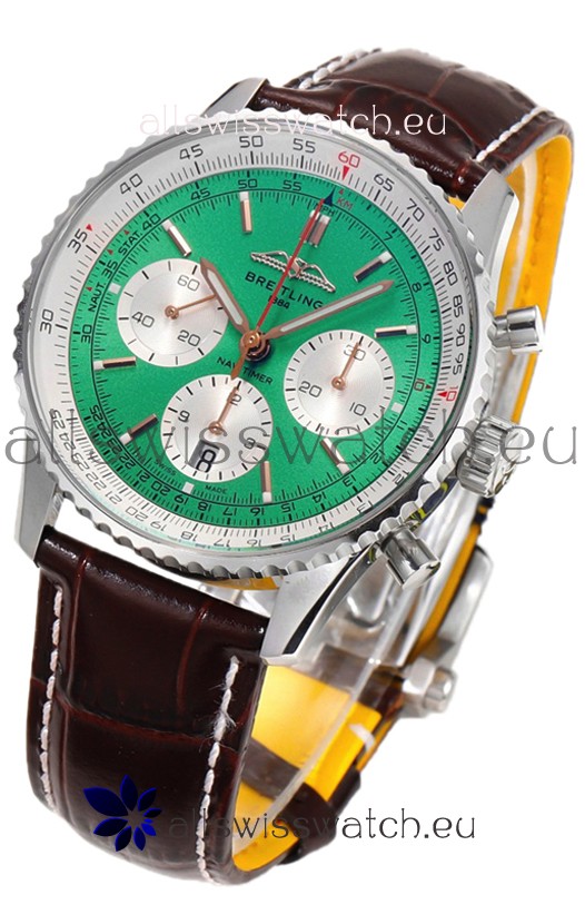 Breitling Navitimer B01 Chronograph 43 Green Dial - 904L Steel Casing 1:1 Mirror Swiss Replica
