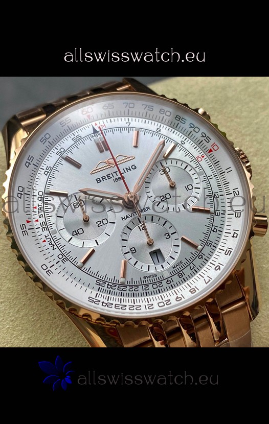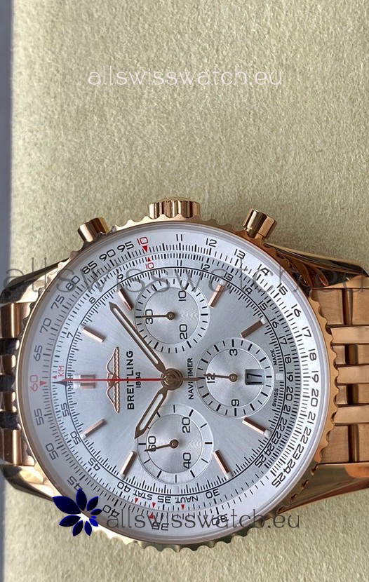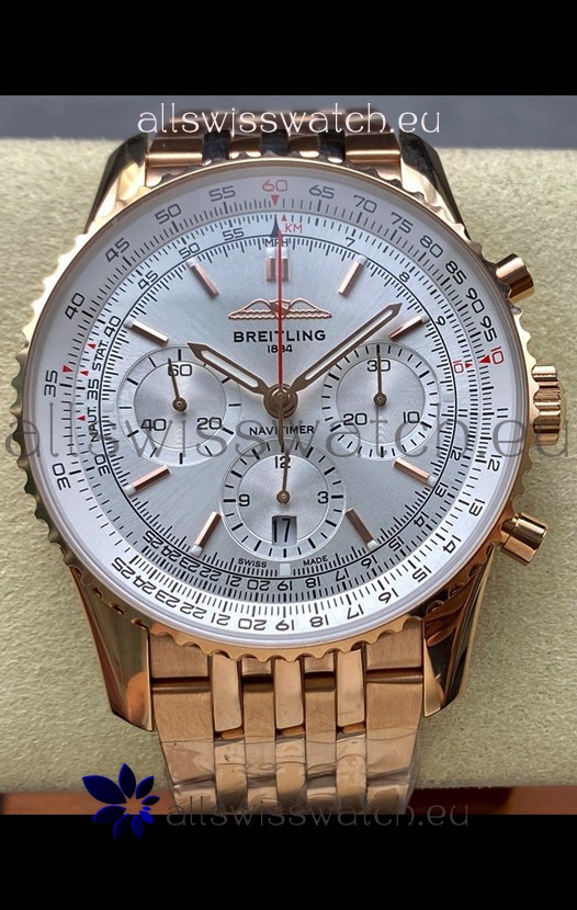 Breitling Navitimer B01 Chronograph 43 White Dial - Rose Gold Plated Casing 1:1 Mirror Swiss Replica