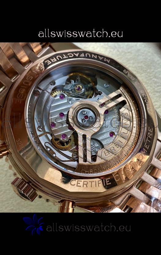Rose Gold Plating on 904L Polished Stainless Steel Case complete with Breitling markings and engravings.