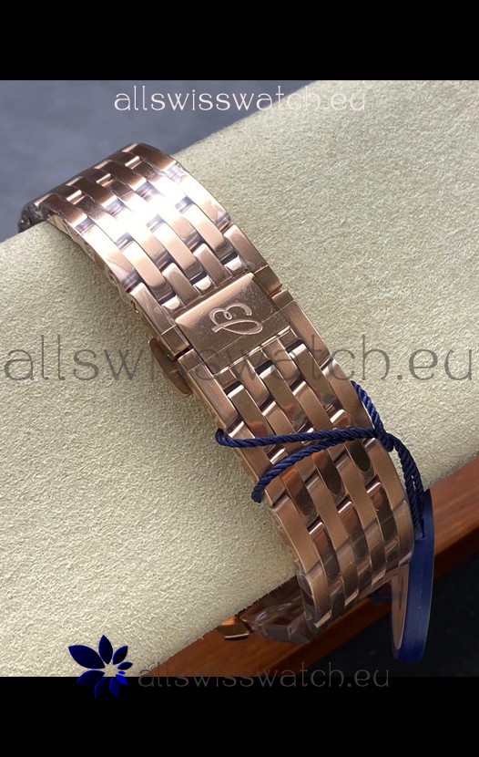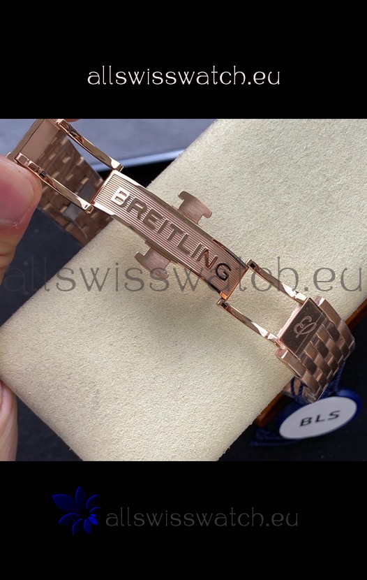 18K Rose Gold Plating on 904L Steel Strap with Breitling Signature Folding Buckle complete with all markings/engravings as per the Originals
