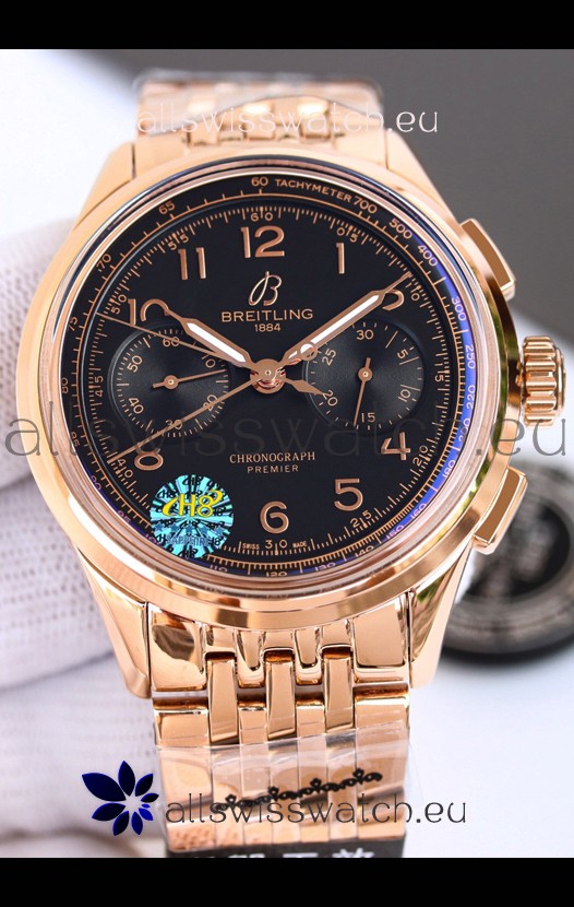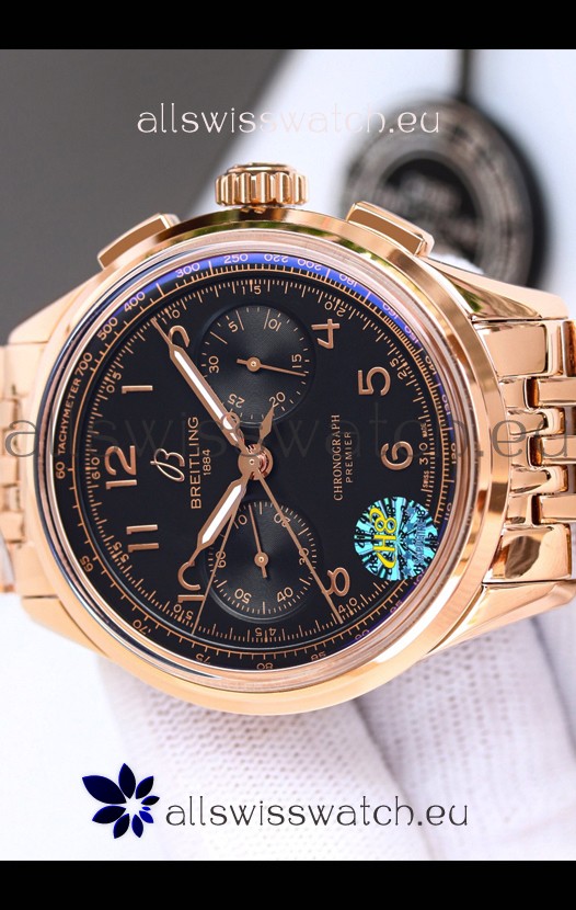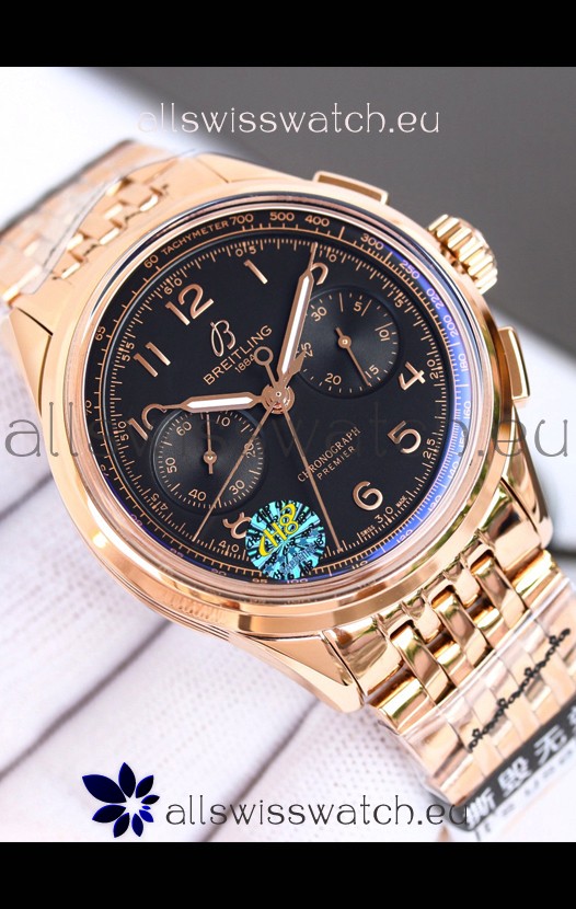 Breitling Premier B01 Chronograph 42 Edition Rose Gold Casing Centenary Brown Dial - 1:1 Mirror Replica Watch