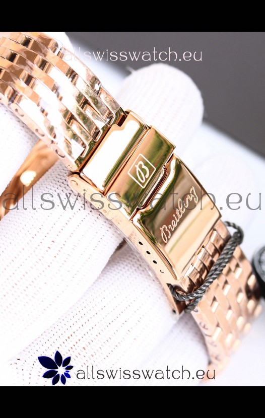 18K Rose Gold Plating on 904L Steel Strap with Fold Buckle complete with Breitling Markings and Engravings