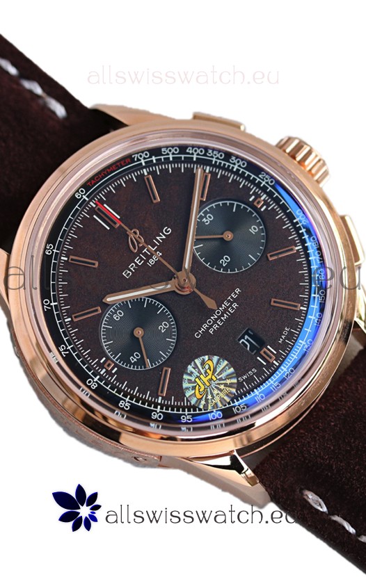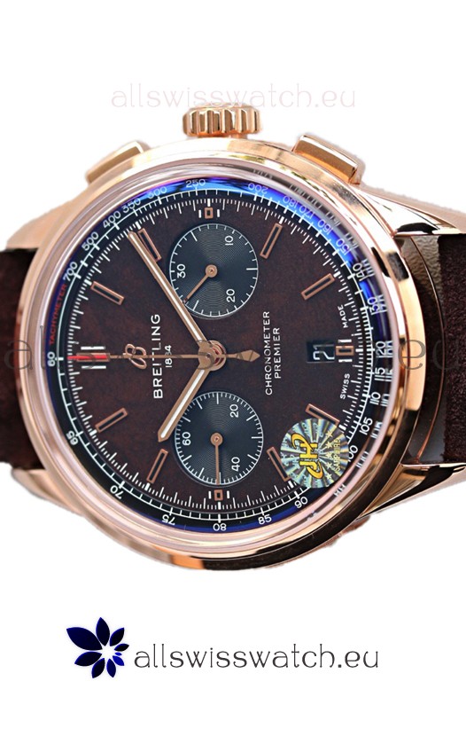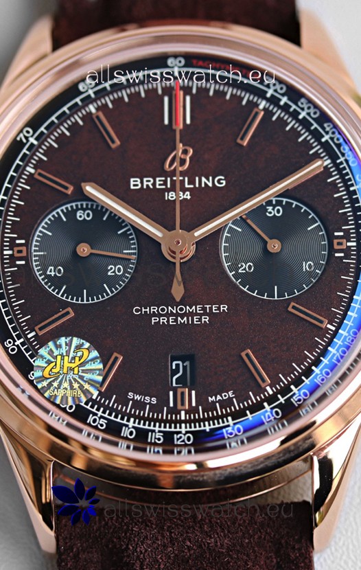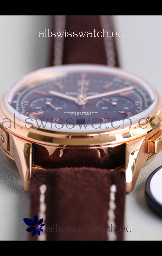 Breitling Premier B01 Chronograph 42 Edition Rose Gold Casing Centenary Brown Dial - 1:1 Mirror Replica Watch