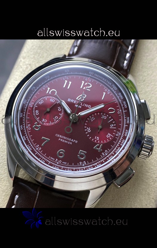 Breitling Premier B01 Chronograph 42 Edition Steel Casing Maroon Dial - 1:1 Mirror Replica Watch