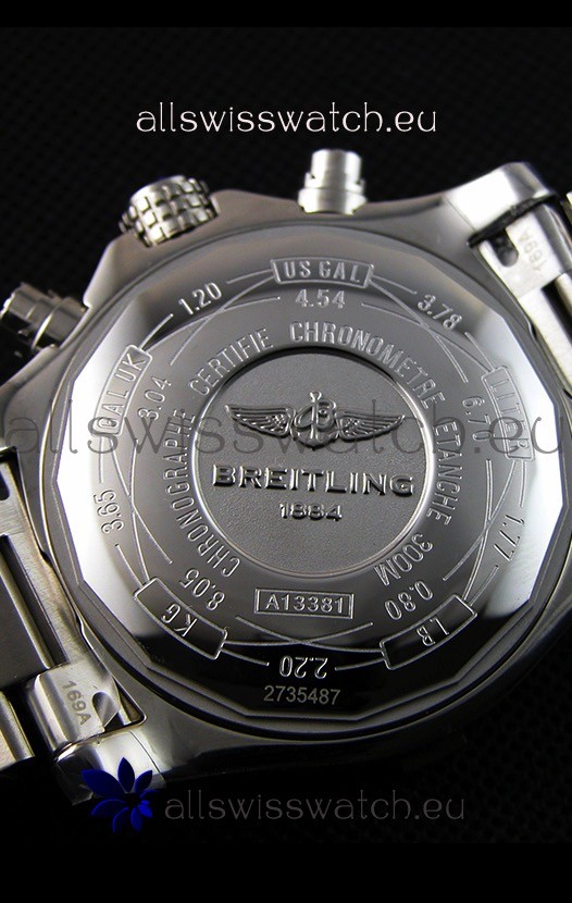 Solid Caseback with Breitling Markings and Engravings. Rotating Bezel as per the Genuine.