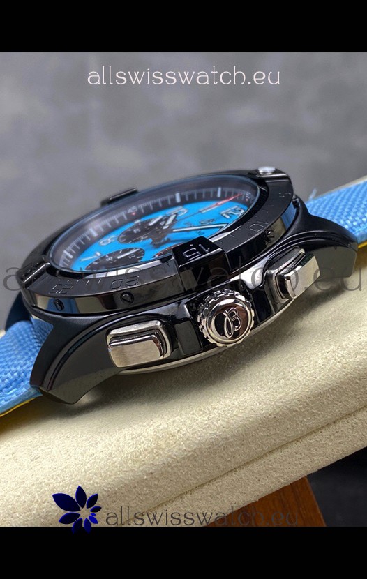 DLC Coating on 904L Steel Case complete with Breitling markings and Details as per the originals.