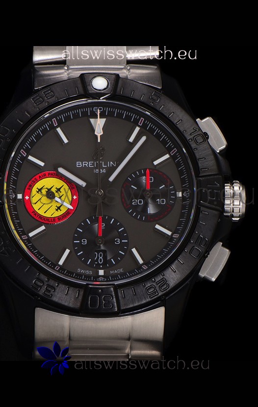 DLC Coating on 904L Steel Case complete with Breitling markings and Details as per the originals.