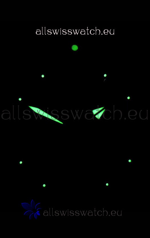 Super Lumed Hour and Minutes Hands with Date Window at 6 O'Clock. Two Tone Black Ceramic Rotating Bezel