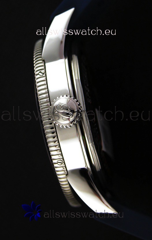 Super Lumed Hour and Minutes Hands with Date Window at 6 O'Clock. Blue Ceramic Rotating Bezel