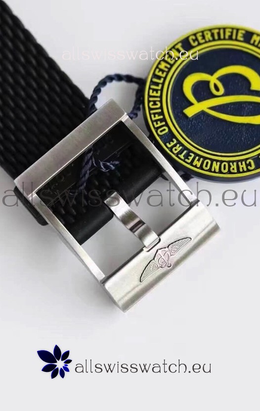 Genuine Rubber Strap with Steel Tang Buckle complete with Breitling Markings and Engravings