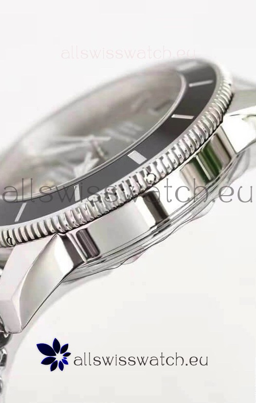 Super Lumed Hour and Minutes Hands with Date Window at 6 O'Clock. Two Tone Black Ceramic Rotating Bezel