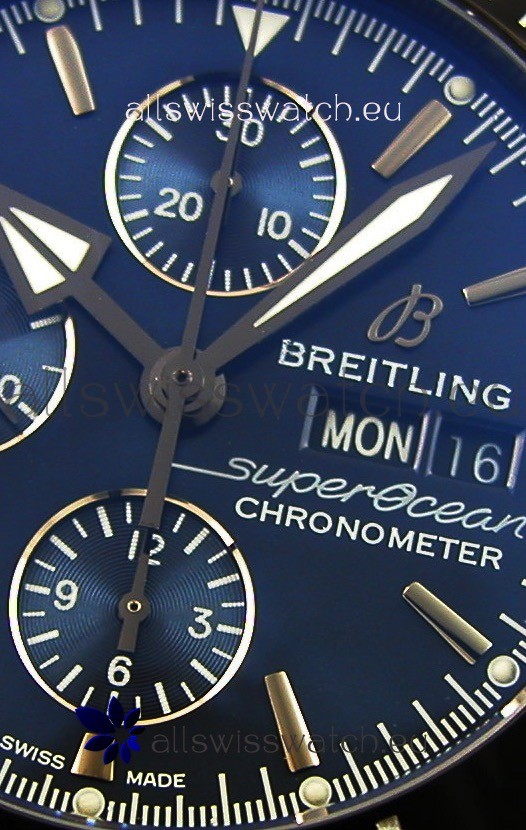Blue Dial with 3 Functional Sub Dials and Day/Date Window at 3 O'Clock Position.