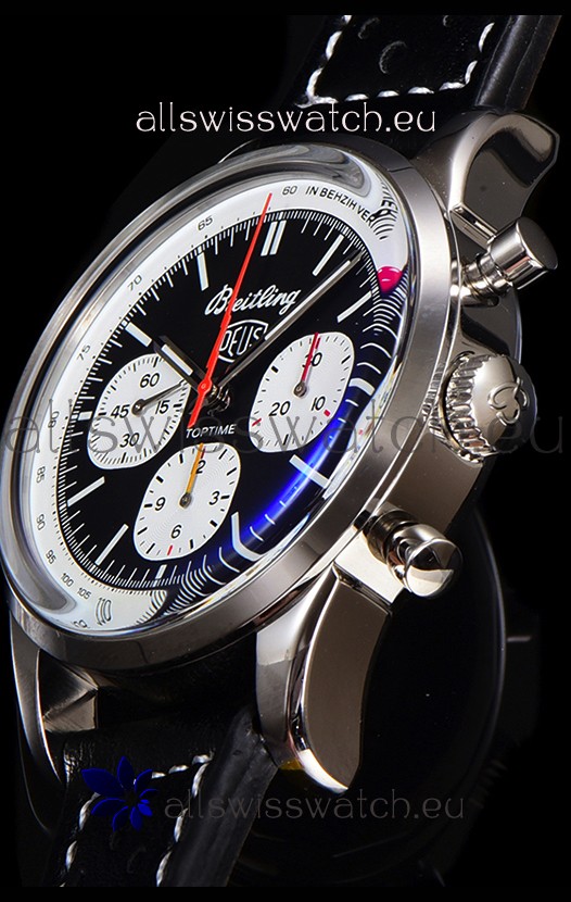 Breitling Top Time B01 Deus Edition Black Dial Leather Strap 1:1 Mirror Swiss Replica Watch