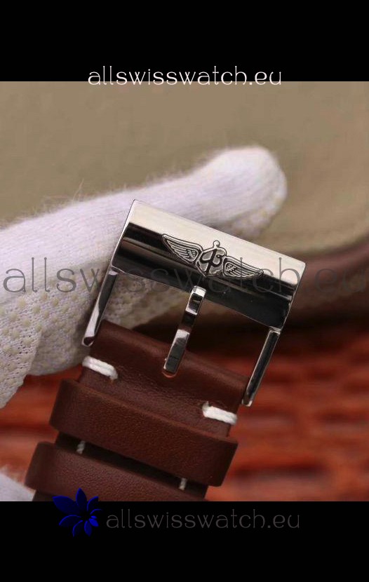 Genuine Leather Strap with Stainless Steel Tang Buckle complete with Breitling Markings and Engravings