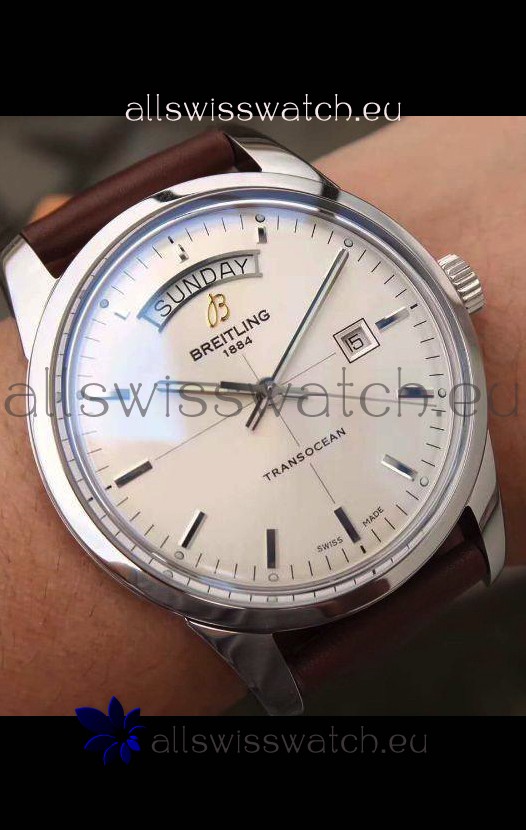 Breitling Transocean Day & Date Swiss Replica Watch in White Dial 1:1 Mirror Edition