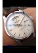 White Dial with Date Window at 3 O'clock and Date Indicator at 12 O'clock.