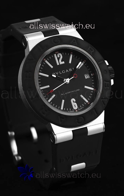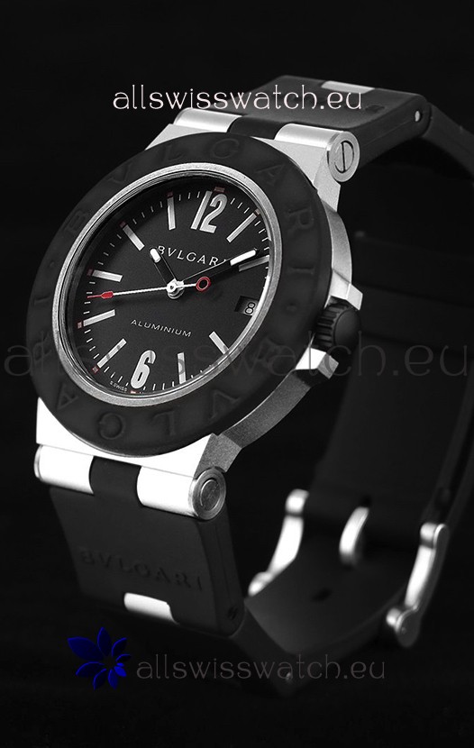 Bvlgari Aluminum 1:1 Mirror Swisss Replica Watch in Black Dial
