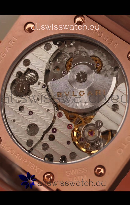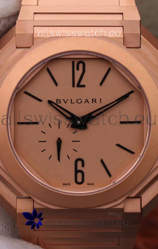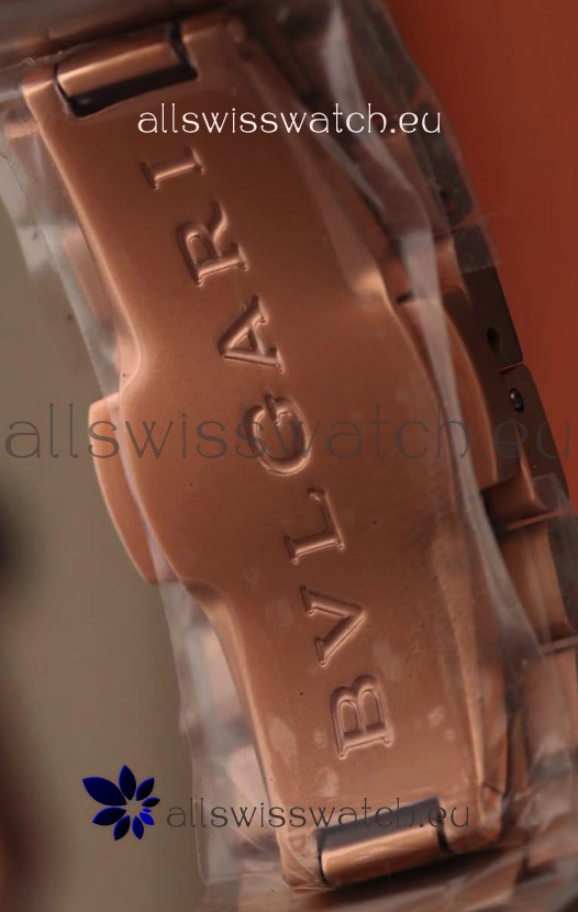 Rose Gold Sandblasted Ceramic Octagon Shaped Stainless Steel Case complete with Bvlgari markings and engravings.