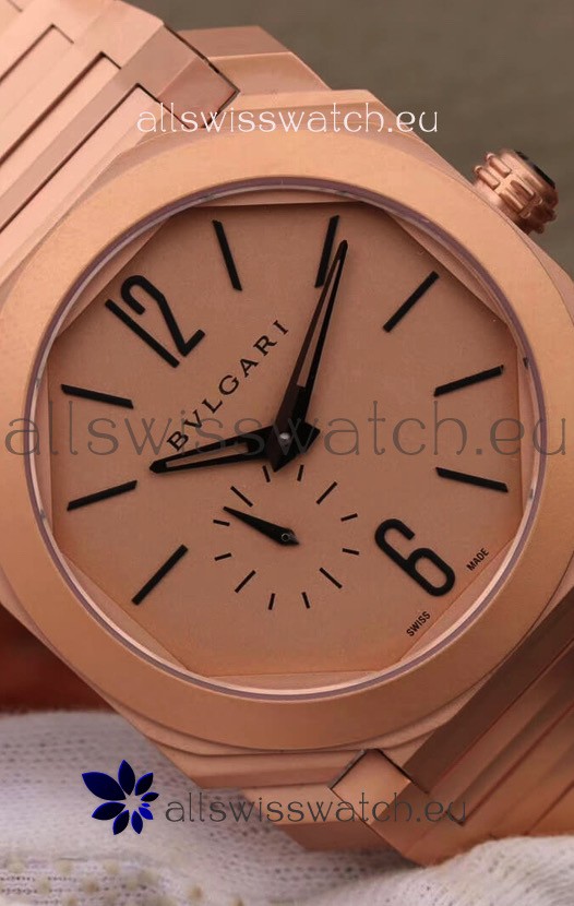 Bvlgari Octo Finissmo Edition 1:1 Mirror Replica Rose Gold Sandblasted Ceramic Casing and Strap
