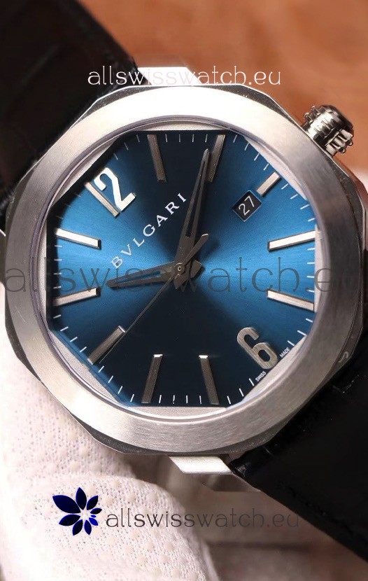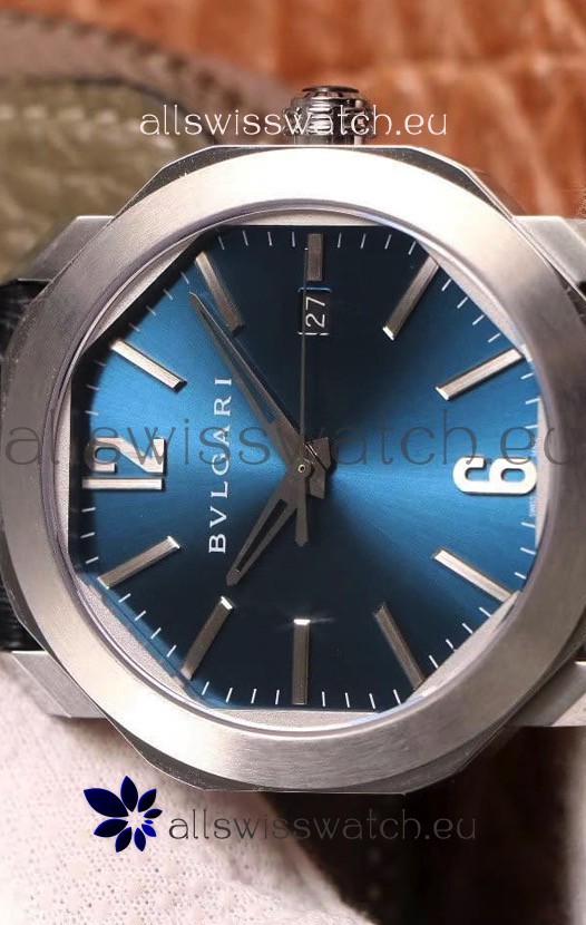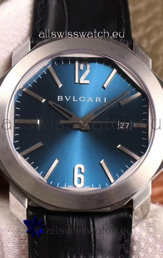 Bvlgari Octo Roma Edition 1:1 Mirror Replica in 904L Steel Casing - Steel Blue Dial Leather Strap