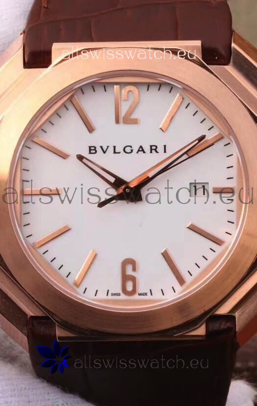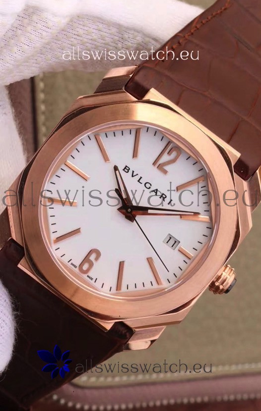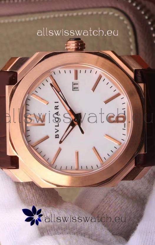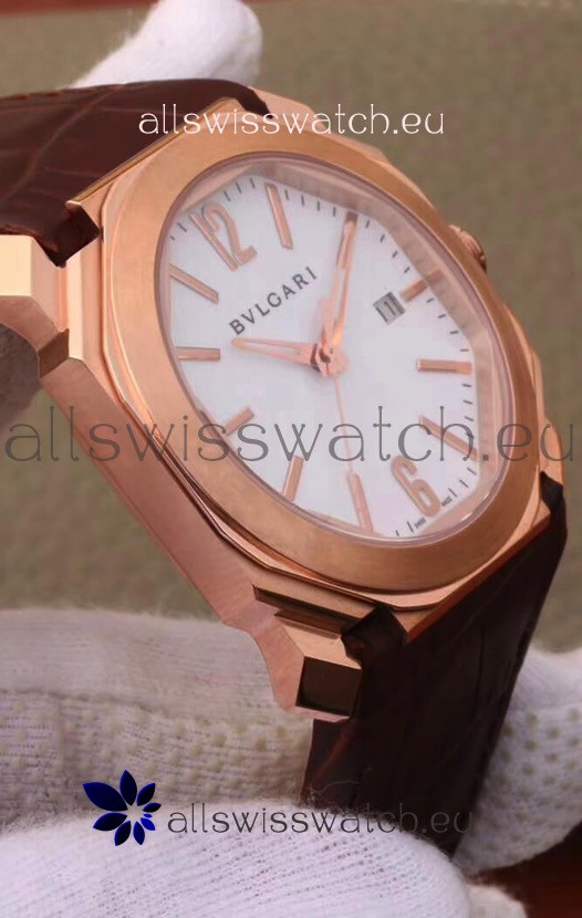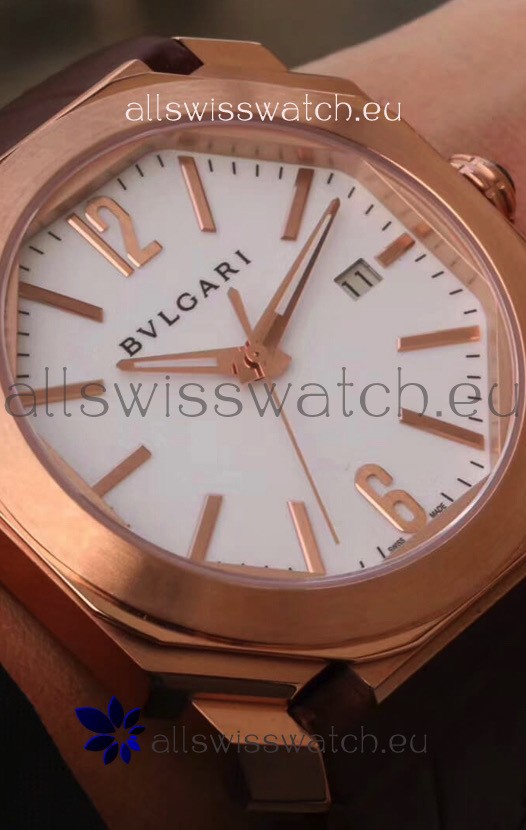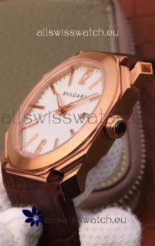 Bvlgari Octo Roma Edition 1:1 Mirror Replica in Rose Gold - White Dial