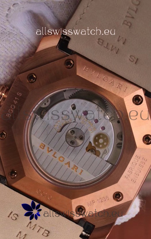 Rose Gold Plating on 904L Octagon Shaped Stainless Steel Case complete with Bvlgari markings and engravings.