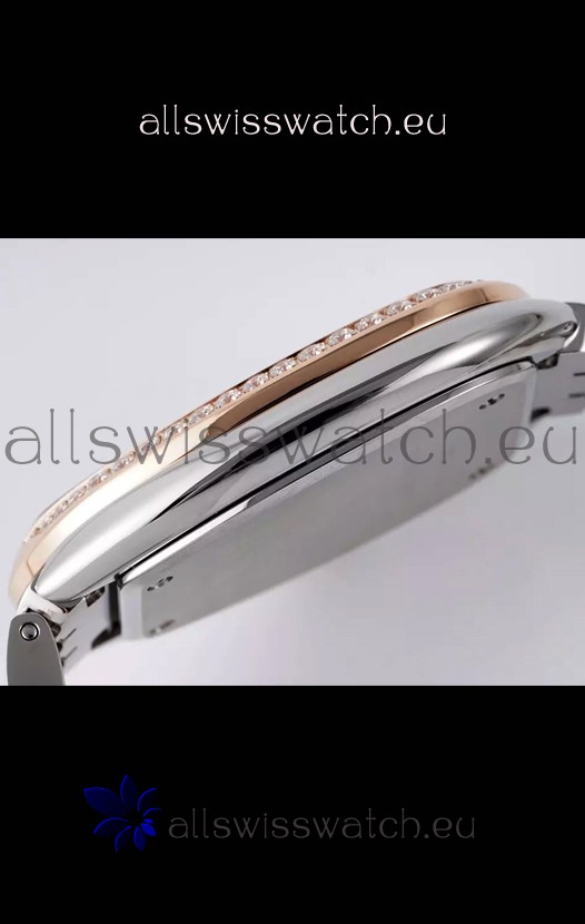 904L Polished Steel Casing. Swiss Cut Diamonds Bezel