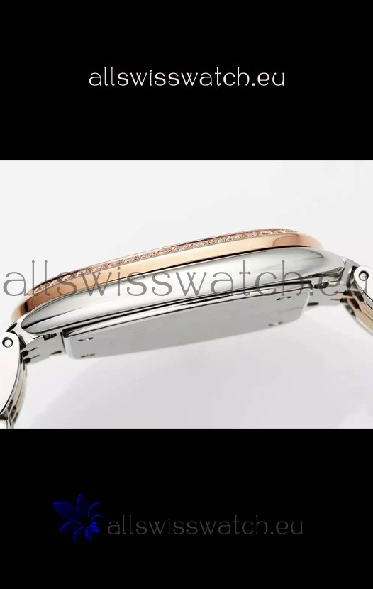 18K Rose Gold Two Tone Plating on 904L Polished Steel Casing with Swiss Cut Diamonds Bezel