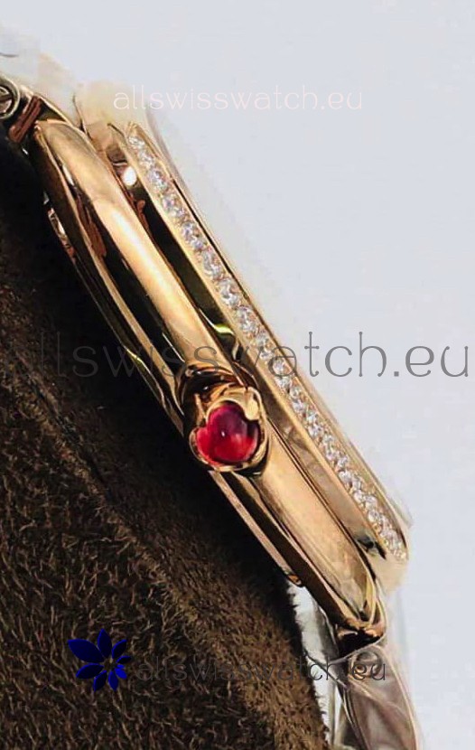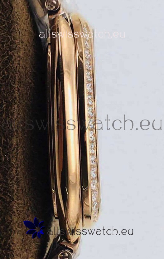 18K Rose Gold Plating on 904L Polished Steel Casing. Swiss Cut diamonds Bezel