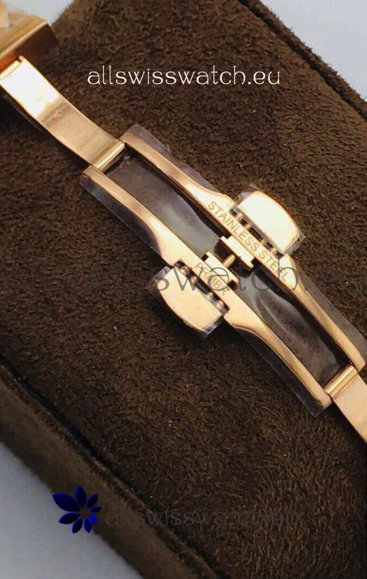 18K Rose Gold Plating on 904L Steel Strap with Deployant Buckle complete with all markings/engravings
