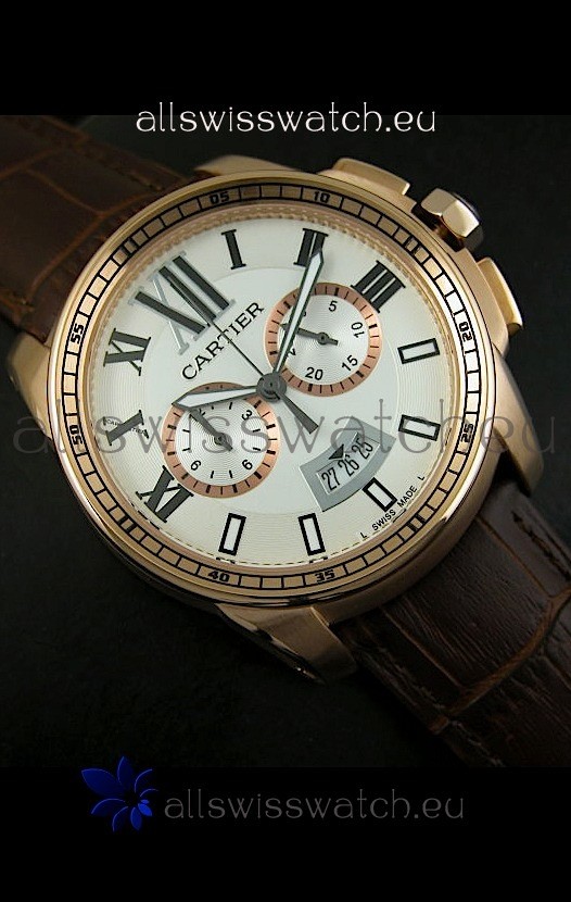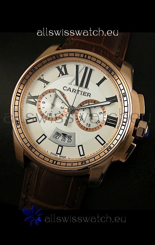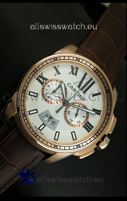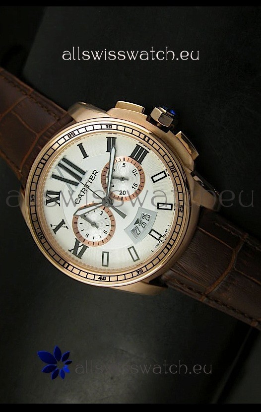You're reviewing: Calibre De Cartier Chronograph Japanese Replica Watch in Pink Gold