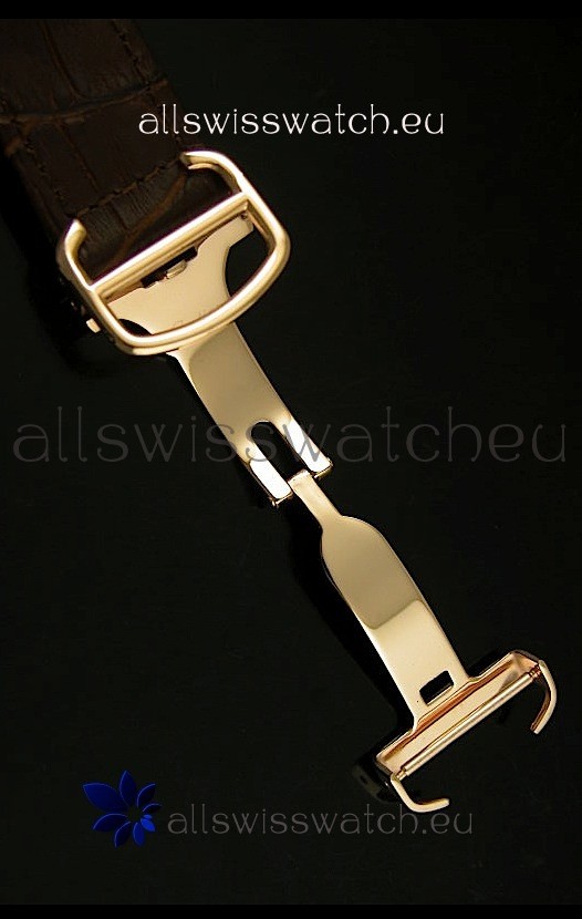 Genuine Brown Leather Strap with Cartier Markings and Engravings and Folding Clasp