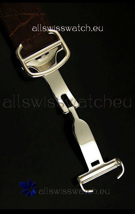 Genuine Brown Leather Strap with Cartier Markings and Engravings and Folding Clasp