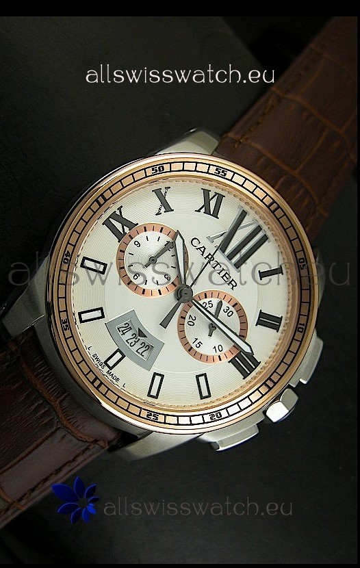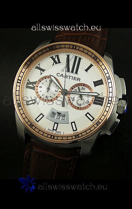 You're reviewing: Calibre De Cartier Chronograph Japanese Replica Watch in Two Tone