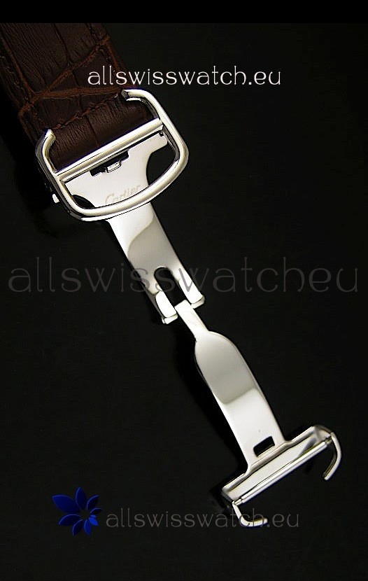 Genuine Brown Leather Strap with Cartier Markings and Engravings and Folding Clasp