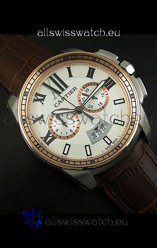 Calibre De Cartier Chronograph Japanese Replica Watch in Two Tone