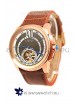 Watch name: Calibre de Cartier Flying Tourbillon Japanese Replica Rose Gold Watch in Black Dial
