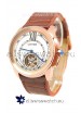Watch name: Calibre de Cartier Flying Tourbillon Japanese Replica Rose Gold Watch in Brown Strap