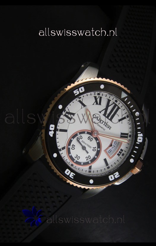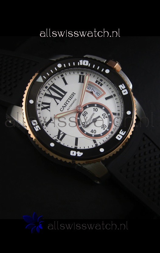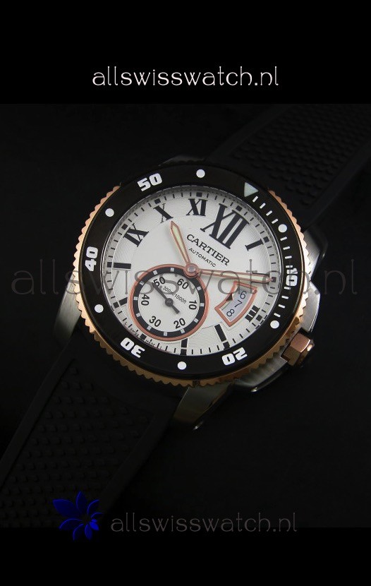 You're reviewing: Calibre De Cartier Watch 42MM White Dial Two Tone Case - 1:1 Mirror Replica Watch