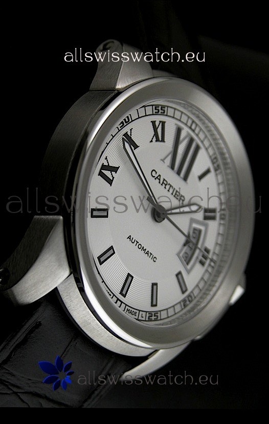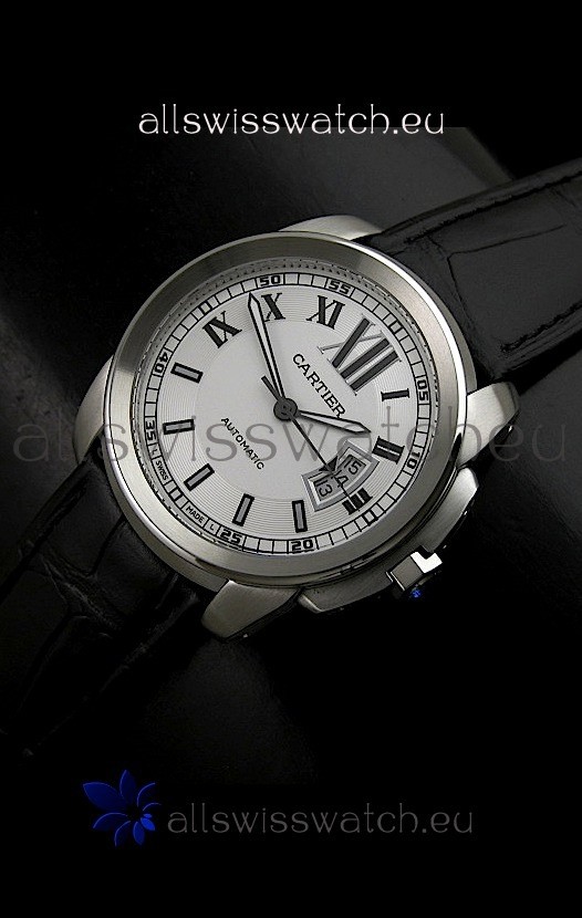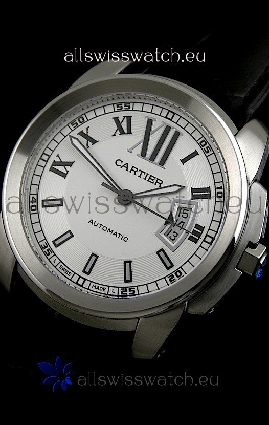 You're reviewing: Cartier Calibre de Cartier Swiss Replica Automatic Watch in White Dial