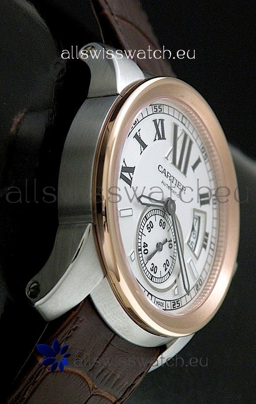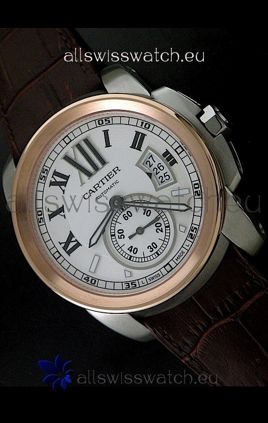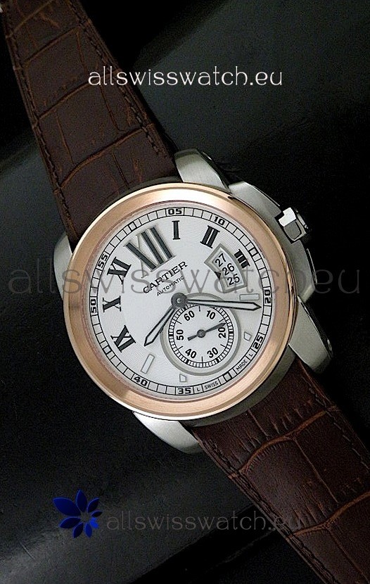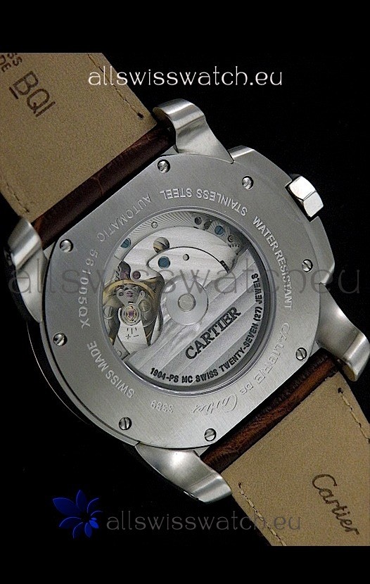 Watch name: Cartier Calibre de Japanese Replica Steel Watch in Brown Leather Strap