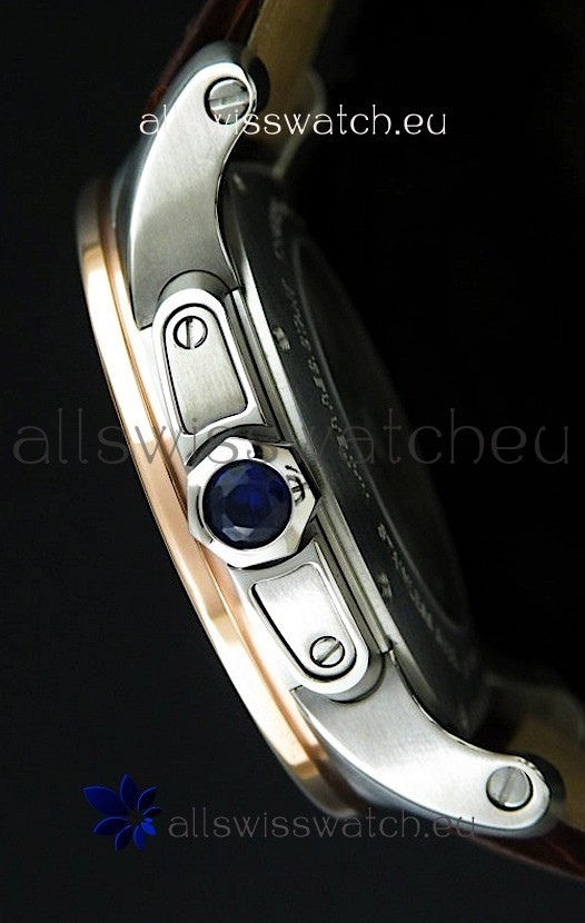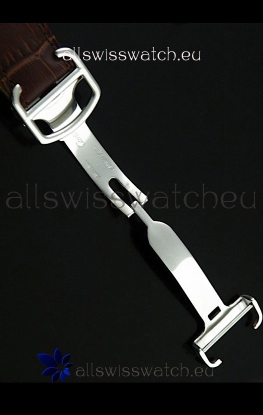 Strap: Genuine Brown Leather Strap with Cartier Markings and Engravings exactly like the Authentics